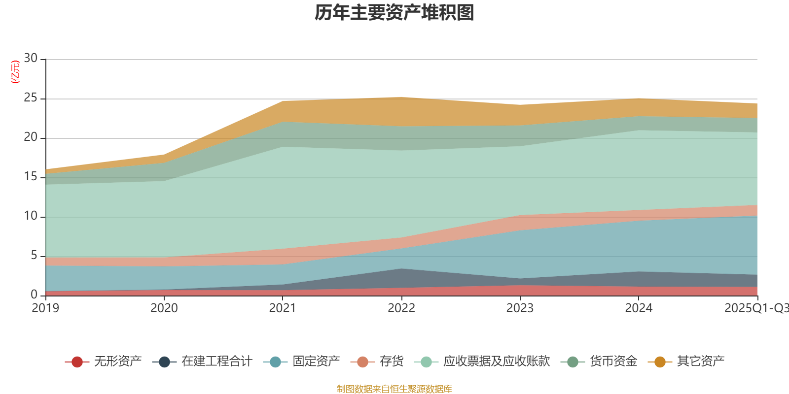资产重大变化方面,截至2025年三季度末,公司固定资产较上年末增加16.27%,占公司总资产比重上升5.01个百分点;应收票据及应收账款较上年末减少9.16%,占公司总资产比重下降2.71个百分点;其他非流动资产较上年末减少66.64%,占公司总资产比重下降1.51个百分点;在建工程合计较上年末减少19.15%,占公司总资产比重下降1.3个百分点。