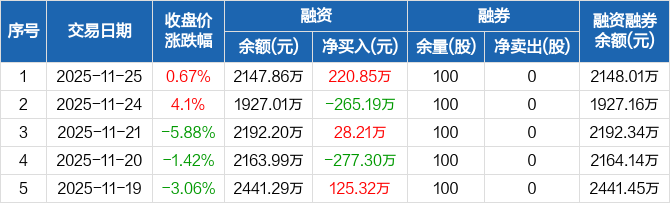 保立佳:融资净买入220.85万元,融资余额2147.86万元(11-25)
