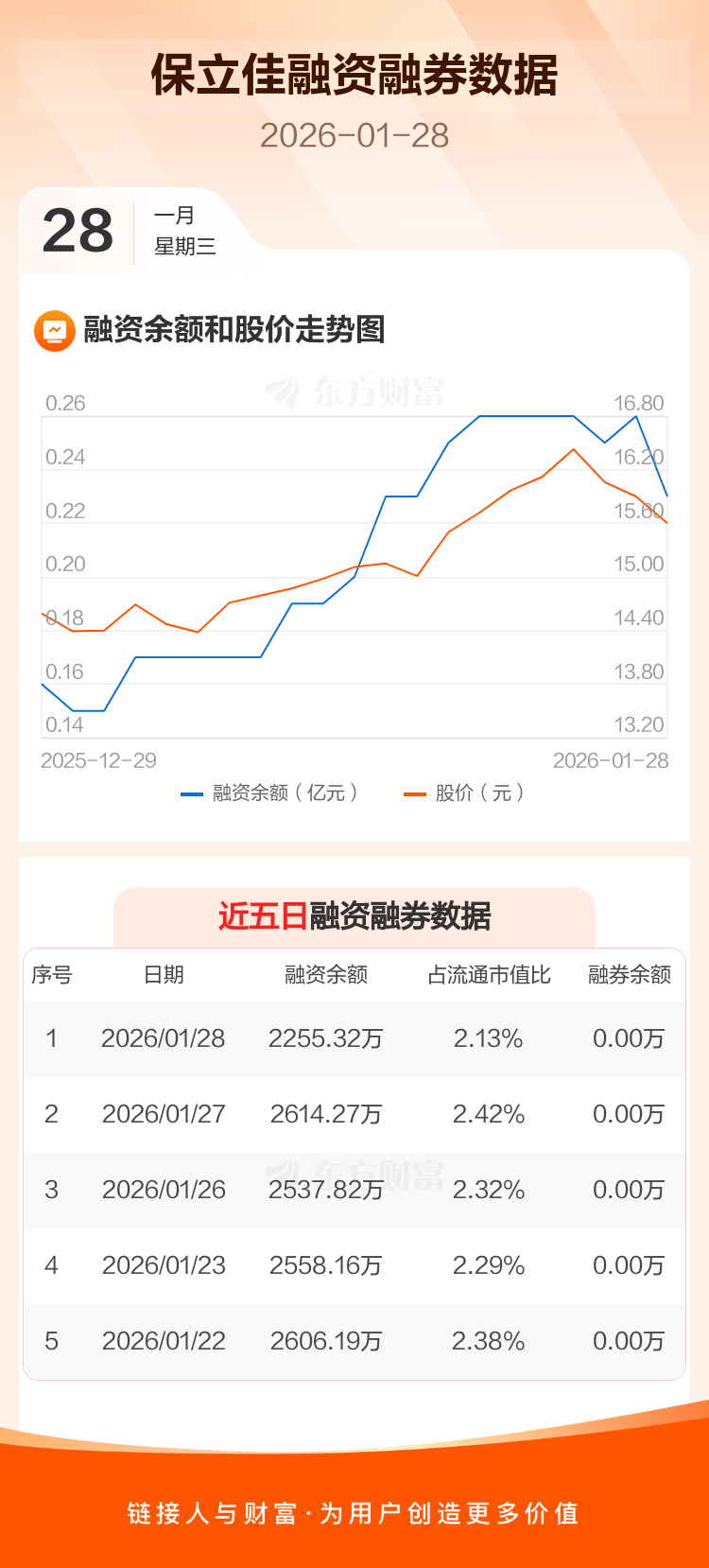 交易所最新数据显示,保立佳于2026年1月28日获融资买入152.85万元,融资偿还511.80万元,当日融资净偿还358.95万元。目前,该股融资余额2255.32万,占流通市值比例为2.13%。