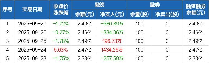 中环海陆:融资净偿还586.89万元,融资余额2.4亿元(09-29)