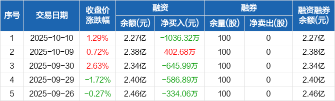 中环海陆:融资净偿还1036.32万元,融资余额2.27亿元(10-10)