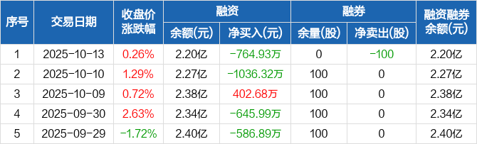 中环海陆:融资净偿还764.93万元,融资余额2.2亿元(10-13)