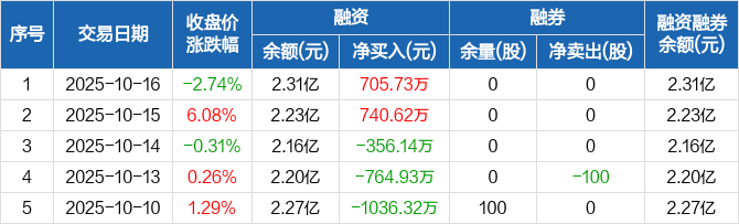 中环海陆:融资净买入705.73万元,融资余额2.31亿元(10-16)