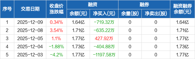金百泽:融资净偿还719.32万元,融资余额1.64亿元(12-09)