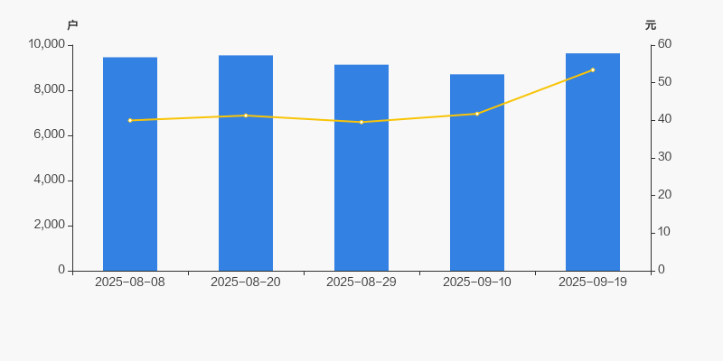 2025年8月8日至今,公司股东户数有所增长,区间涨幅为1.85%。2025年8月8日至2025年9月19日区间股价上涨33.57%。