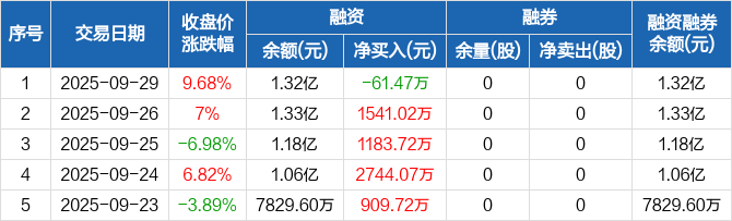 绿岛风:融资净偿还61.47万元,融资余额1.32亿元(09-29)