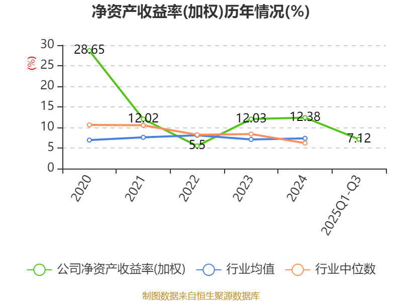 盈利能力方面, 2025年前三季度公司加权平均净资产收益率为7.12%,同比下降2.43个百分点。公司2025年前三季度投入资本回报率为5.78%,较上年同期下降2.11个百分点。
