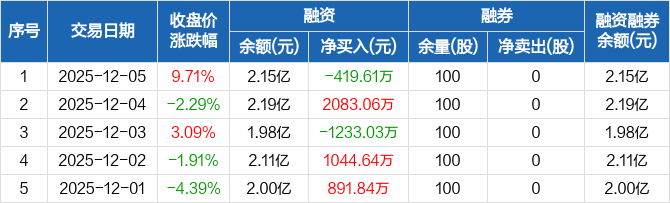 能辉科技:融资净偿还419.61万元,融资余额2.15亿元(12-05)