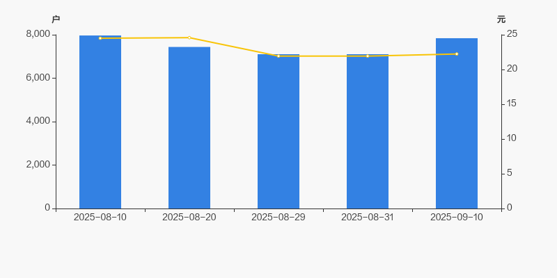 2025年8月10日至今,公司股东户数有所下降,区间跌幅为1.57%。2025年8月10日至2025年9月10日区间股价下降9.27%。