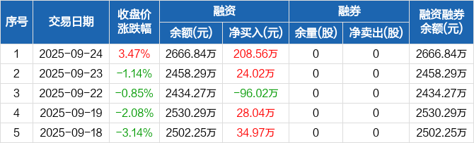 超越科技:融资净买入208.56万元,融资余额2666.84万元(09-24)