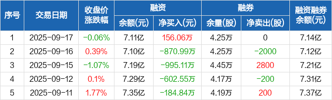 雷电微力:融资净买入156.06万元,融资余额7.11亿元(09-17)