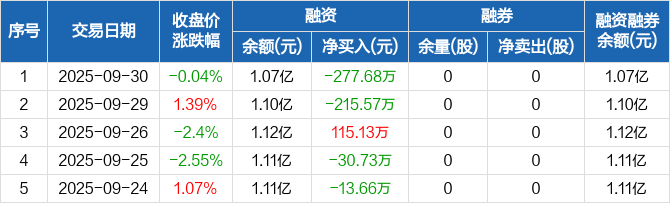 信濠光电:融资净偿还277.68万元,融资余额1.07亿元(09-30)