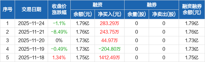 汇隆新材:融资余额1.79亿元,创历史新高(11-24)