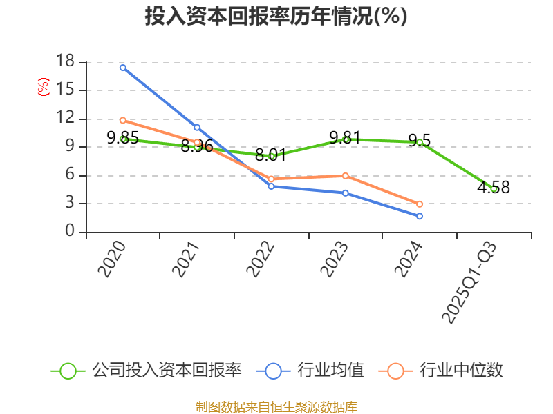 盈利能力方面, 2025年前三季度公司加权平均净资产收益率为5.42%,同比下降0.27个百分点。公司2025年前三季度投入资本回报率为4.58%,较上年同期下降0.1个百分点。