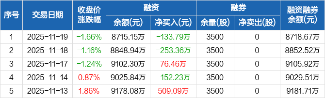 兰卫医学:融资净偿还133.79万元,融资余额8715.15万元(11-19)