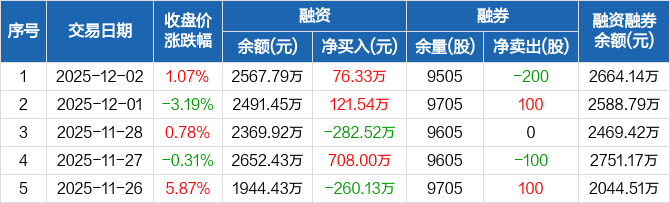 匠心家居:融资净买入76.33万元,融资余额2567.79万元(12-02)