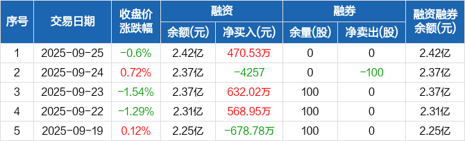 上海艾录:融资净买入470.53万元,融资余额2.42亿元(09-25)