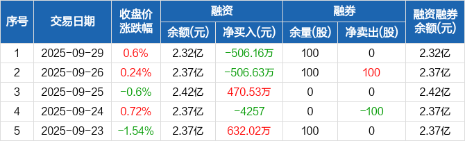 上海艾录:融资净偿还506.16万元,融资余额2.32亿元(09-29)