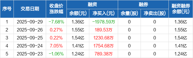 显盈科技:融资净偿还1978.59万元,融资余额1.36亿元(09-29)