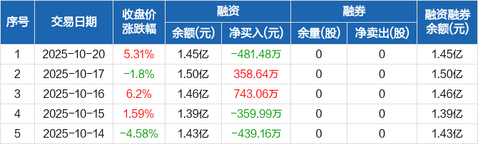 显盈科技:融资净偿还481.48万元,融资余额1.45亿元(10-20)