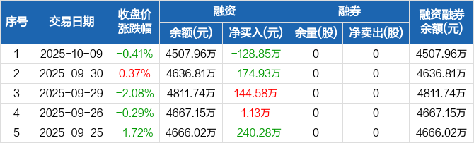大地海洋:融资净偿还128.85万元,融资余额4507.96万元(10-09)