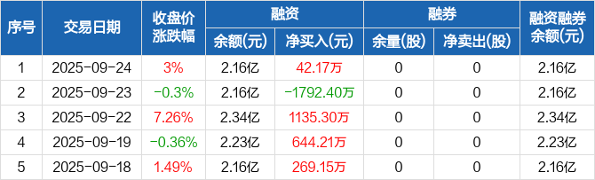 开勒股份:融资净买入42.17万元,融资余额2.16亿元(09-24)