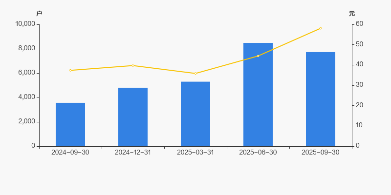 截至2025年9月30日,公司最新总股本为9022.98万股,其中流通股本为5935.48万股。户均持有流通股数量由上期的7001股上升至7684股,户均流通市值44.62万元。