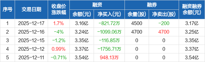 开勒股份:连续4日融资净偿还累计3794.35万元(12-17)