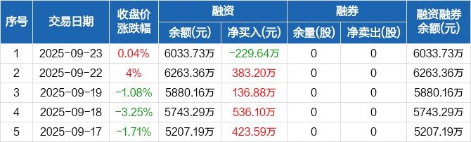 中捷精工:融资净偿还229.64万元,融资余额6033.73万元(09-23)