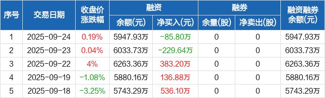 中捷精工:融资净偿还85.8万元,融资余额5947.93万元(09-24)