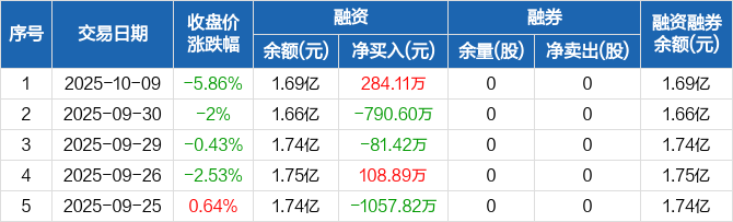 君亭酒店:融资净买入284.11万元,融资余额1.69亿元(10-09)