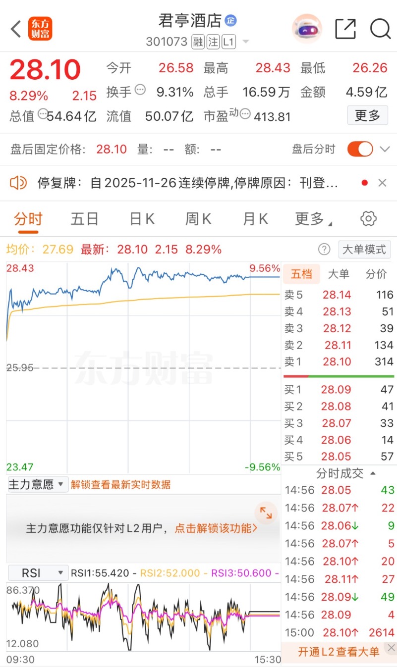 11月25日晚,君亭酒店公告,公司控股股东吴启元正在筹划公司控制权变更相关事宜,该事项可能导致公司控股股东及实际控制人发生变更。公司股票将自2025年11月26日开市起停牌,预计停牌时间不超过2个交易日。