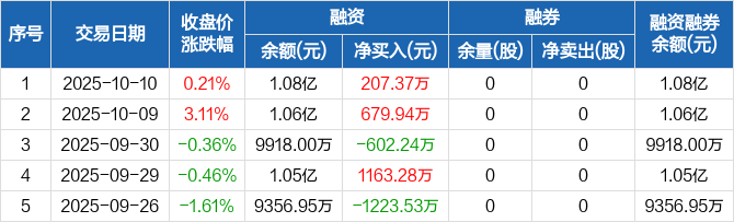 星华新材:融资净买入207.37万元,融资余额1.08亿元(10-10)