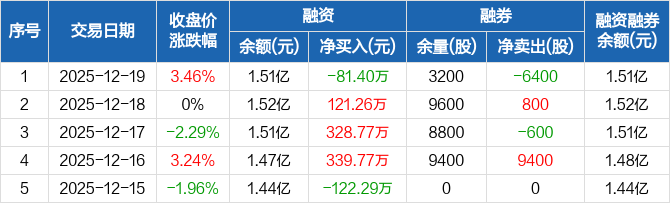 星华新材:融资净偿还81.4万元,融资余额1.51亿元(12-19)