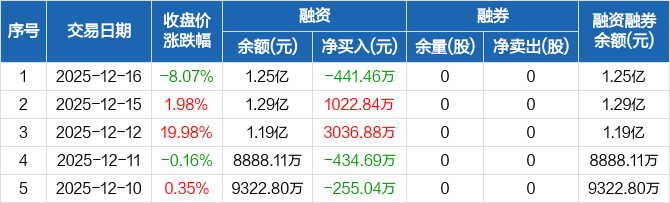 邵阳液压:融资净偿还441.46万元,融资余额1.25亿元(12-16)