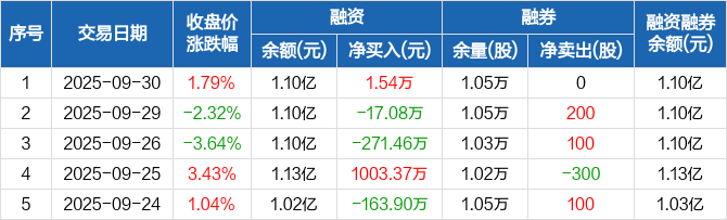 百普赛斯:融资净买入1.54万元,融资余额1.1亿元(09-30)