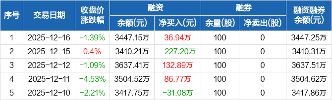 严牌股份:融资净买入36.94万元,融资余额3447.15万元(12-16)