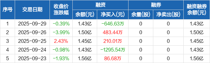 久盛电气:融资净偿还646.63万元,融资余额1.43亿元(09-29)