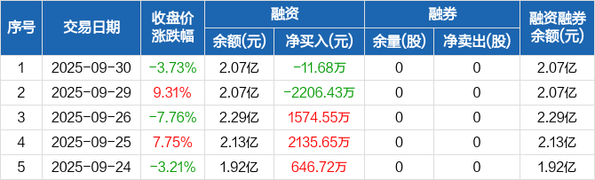 鸿富瀚:融资净偿还11.68万元,融资余额2.07亿元(09-30)
