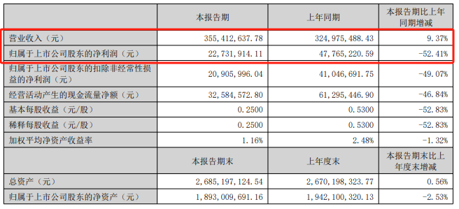 2025年上半年,公司实现营收3.55亿元,同比增长9.37%,但归母净利润同比下滑52.41%至2273万元。毛利率下降6.6个百分点至29.39%,净利率缩水9.09个百分点。