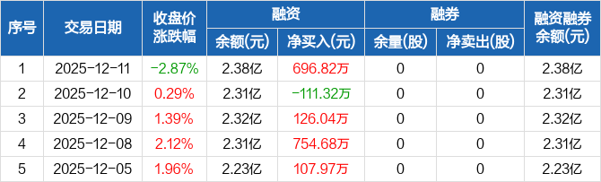 鸿富瀚:融资净买入696.82万元,融资余额2.38亿元(12-11)