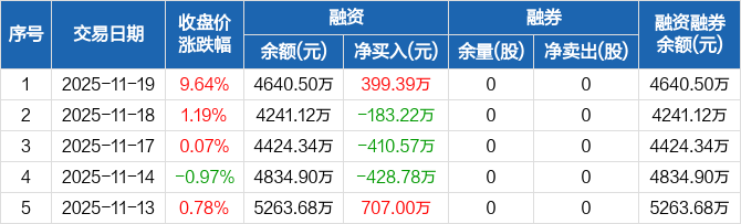 戎美股份:融资净买入399.39万元,融资余额4640.5万元(11-19)