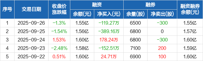 拓新药业:融资净偿还119.27万元,融资余额1.55亿元(09-26)