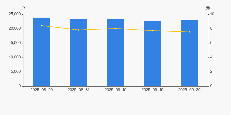 2025年8月20日至今,公司股东户数有所下降,区间跌幅为3.36%。2025年8月20日至2025年9月30日区间股价下降10.43%。