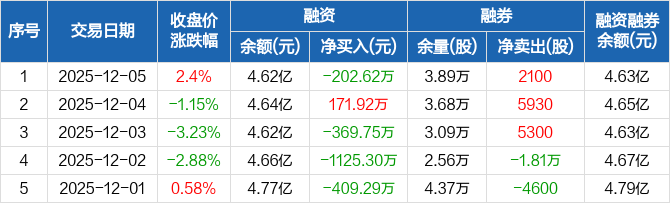深城交:融资净偿还202.62万元,融资余额4.62亿元(12-05)