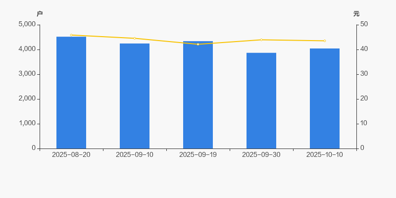 截至2025年10月10日,公司最新总股本为5894.74万股,其中流通股本为1834.74万股。户均持有流通股数量由上期的4746股下降至4539股,户均流通市值19.75万元。
