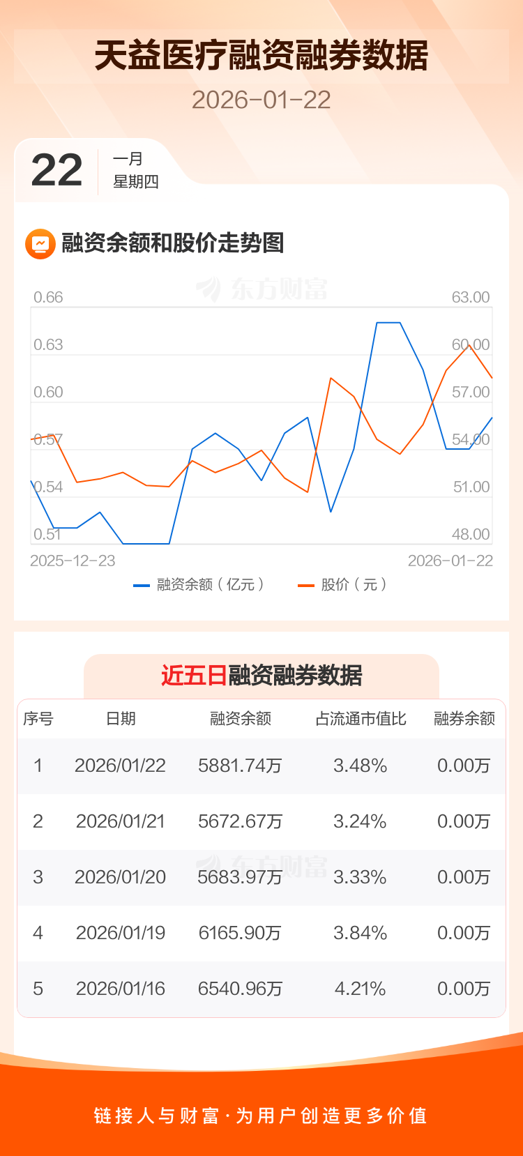 交易所最新数据显示,天益医疗于2026年1月22日获融资买入854.51万元,融资偿还645.44万元,当日融资净买入209.07万元。目前,该股融资余额5881.74万,占流通市值比例为3.48%。