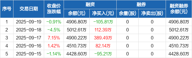 风光股份:融资净偿还105.81万元,融资余额4906.8万元(09-19)