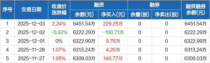 风光股份:融资净买入229.25万元,融资余额6451.54万元(12-03)