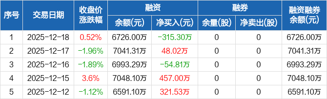 风光股份:融资净偿还315.3万元,融资余额6726万元(12-18)